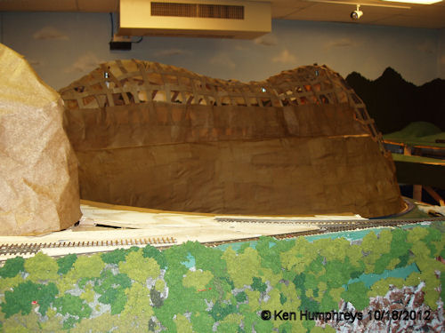 April 2014. The mountain scenery is nearing completion behing the future location of Bryson City.