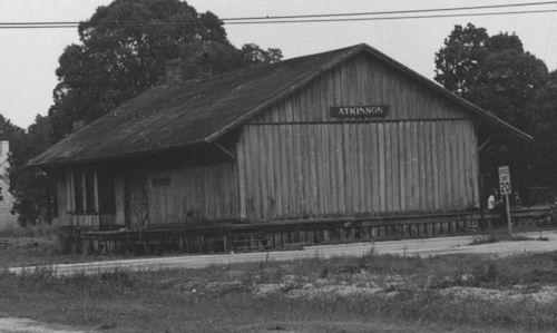 Former Atlantic Coast Line, ex. Cape Fear & Yadkin Valley, depot in Atkinson, NC. Mr. James Eakins bought the depot and moved it to