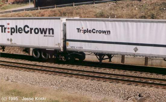 Close up of trailers. Unlike the Swift RoadRailers, the Triple Crown has many lettering variations. |