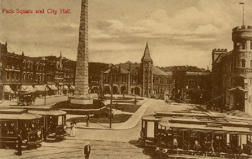 1911 Postcard, Pack Square and City Hall (Brown Rock Company, Asheville). Alan Coleman collection